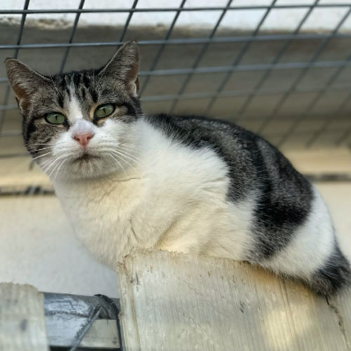 Aguamarina estuvo a punto de perder la vida en una carretera. Vivía en una fábrica a las afueras del pueblo, rodeada de ruido y peligro, hasta que unos trabajadores nos avisaron a tiempo y pudimos rescatarla antes de que fuera atropellada.