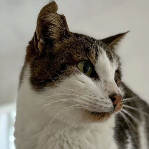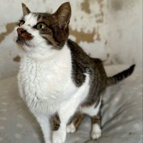 Esa dura realidad ha dejado huella. Cuando fue rescatado, presentaba síntomas de calicivirus, apenas conserva dientes y sus riñones ya no funcionan correctamente, por lo que necesita una alimentación especial. Aun así, Pastel sigue siendo un gato tranquilo y cariñoso, que disfruta intensamente del contacto humano y del calor de un hogar.