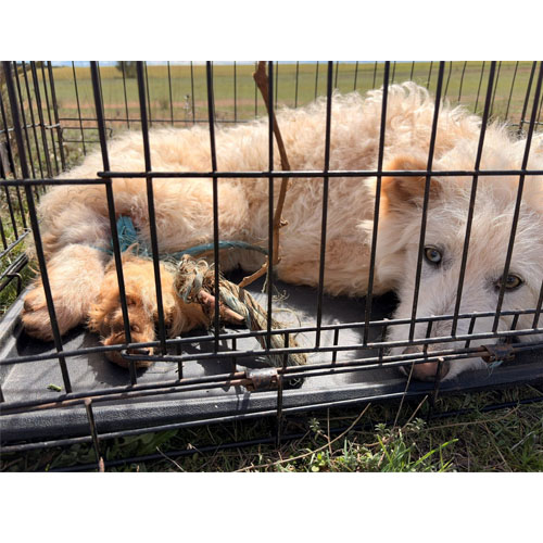 A Samuel lo habían atado de sus cuatro patas con una cuerda.